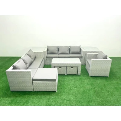 Wicker pe Rattan Sofa Garden Furniture Set with Oblong Coffee Table Armchair 3 Footstools 2 Side Tables Light Grey Mixed Fimous