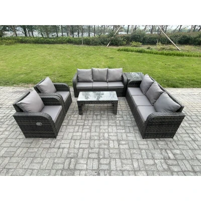 Wicker pe Rattan Sofa Set Outdoor Patio Garden Furniture with Reclining Chair Coffee Table Side Dark Grey Mixed Fimous