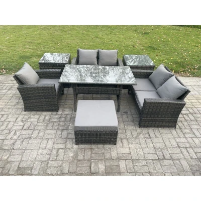 Wicker Rattan Garden Dining Set Outdoor Furniture Sofa with Table Double Seat 2 Side Tables Big Footstool Dark Grey Mixed Fimous