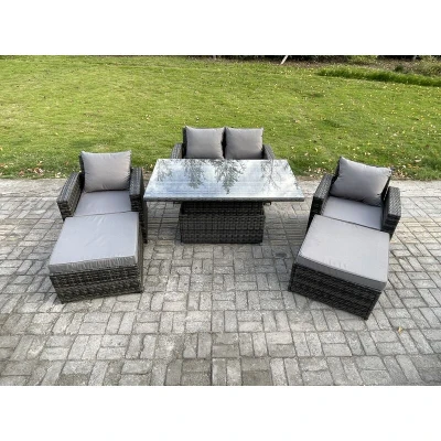 Wicker Rattan Garden Furniture Rising Table Set with 2 Big Footstool Double Seat Sofa Armchairs Dark Grey Mixed Fimous