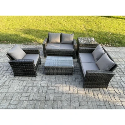 Wicker Rattan Garden Furniture Sofa Set with Rectangular Coffee Table Double Seat Chair Side 5 Seater Outdoor Dark Grey Mixed
