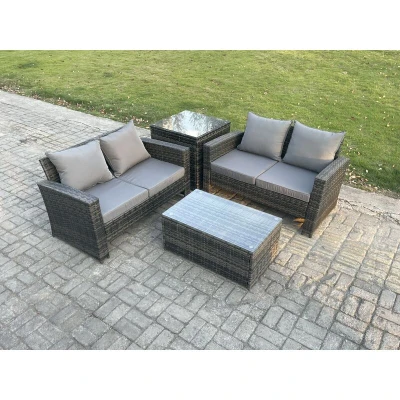 Wicker Rattan Garden Furniture Sofa Set with Rectangular Coffee Table Double Seat Side Outdoor Dark Grey Mixed Fimous