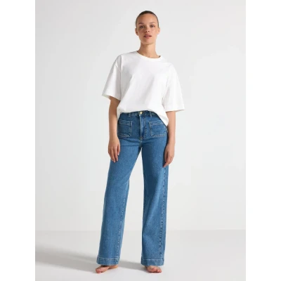High waist jeans in cotton denim with light stretch and extra wide legs.