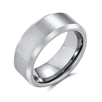STUNNING STYLE - For the beloved man in your life, a stunning wedding band. This beautifully designed wedding band features silver tone band with matte finish top and beveled polished edge. A comfort fit finishes the handsome design for a perfect fit. Measure: 8MM Band Width Weight: 19 Gram Material: Metal Materials of Titanium, Carbide ENGRAVABLE INSIDE AND OUT - Why not engrave names inspirational word letters, numbers, date, or coordinates. Unisex -durable will resist tarnish and never lose its shine Carbide metal is heavy and durable hypoallergenic and scratch resistant. Thoughtful Gifts for Him: Our jewelry is the perfect choice for special occasions such as Father's Day, birthdays, Christmas, holidays, graduations, groomsmen gifts, anniversaries, and Valentine’s Day. Whether it's for your best friend, boyfriend, brother, dad, grandfather, son, husband, uncle, nephew, a teenage guy, or even to treat yourself, our unique pieces make for meaningful and stylish gifts for men. USA-Based Company with 30-Day After-Sale Service: We take pride in our craftsmanship and product quality. Rest assured, if you receive an item with manufacturing defects, we've got you covered. Click on the link to contact our friendly customer service.