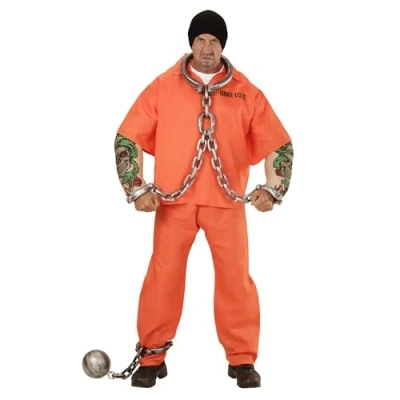 Widmann 00643 adult costume tattooed prisoner, top with muscular arms and trousers, orange
