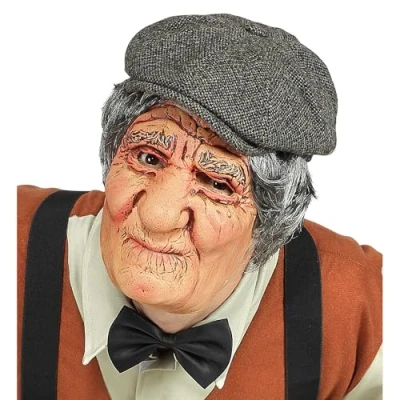Complete your old man outfit with this half mask from Widmann. No more annoying and long make-up, because in no time you have a really cool and old look The mask looks like a typical old gentleman, namely with many wrinkles and fallen mouth, as if he had no more teeth There are openings in the nose and eyes and with the help of an elastic band, it can be easily attached to the head With this mask, you can take a trip in time to your future. Complete the accessory with a wig and you will be an eye-catcher at any event More beautiful costumes and accessories can be found in our brand shop. Click on the brand name Widmann below the product title, Manufacturer: Widmann