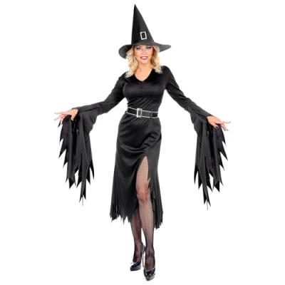 Are you looking for a costume for Halloween? Dann ist dieses Hexenkostm, der Firma Widmann, genau das Richtige Im Lieferumfang enthalten ist ein schwarzes Kleid, ein schwarzer Grtel mit silberfarbenen Akzenten, sowie ein pender Hexen Hut The highlight is the sleeves, on which a triangular fabric with prongs is attached The witch costume is available in size L for women. Genau das richtige Outfit fr Halloween Weitere schne Kostme und Zubehr finden Sie in unserem Marken Shop. Click on the brand name Widmann below the product title, Manufacturer: Widmann