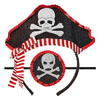 With this accessory, you can transform yourself into a dangerous pirate from the Caribbean Included are the headband and eye patch A mini pirate hat is attached to the headband. This is decorated with a skull and a ribbon The eye patch is also equipped with a skull and shiny sequins Combine your pirate costume with this set and your fancy dress will be an absolute highlight, Manufacturer: Widmann S.r.l.