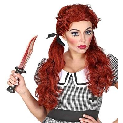 Don't have the perfect accessory for your killer doll costume yet? Then this wig from Widmann is just the thing for you Burgundy red wavy hair is tied with a black bow to two braids If necessary, you can style this wig with hairspray to reduce frizz The wig is not heat resistant More beautiful costumes and accessories can be found in our branded shop. Click on the Widmann brand name below the product title nlll, Manufacturer: Widmann S.r.l.