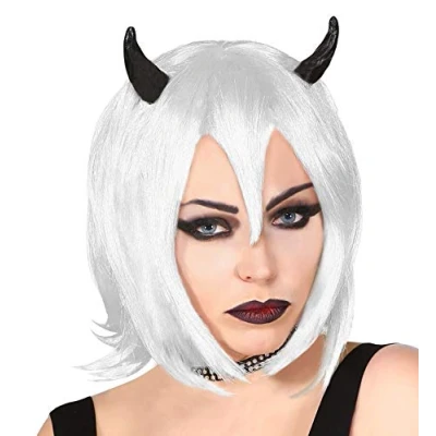 Are you missing the ideal accessory for your costume? Then this devil wig from Widmann is just the thing for you The wig is in a beautiful grey and decorated with 2 black horns. The hair is shoulder length and layered The pony is shaped into a pointed prong. This falls over the nose, making the wig an eye-catcher If necessary, you can style this wig with hairspray to reduce frizz. The wig is not heat resistant More beautiful costumes and accessories can be found in our brand shop. Click on the brand name Widmann below the product title, Manufacturer: WIDMANN MILANO PARTY FASHION