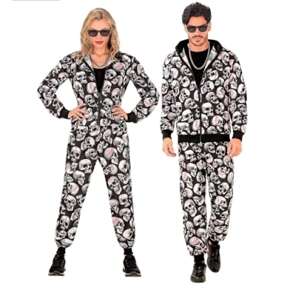 Take a dip into the past with this exclusive 80s style jumpsuit updated with a skull-themed print This unisex jumpsuit combines a bold, vibrant design with an eye-catching skeleton motif, perfect for dancing the night away without compromising on comfort Ideal for disco parties, Halloween events or simply to stand out on any occasion The package includes a trendy jacket and matching trousers, perfect for creating a complete and eye-catching look Item code: 07071, Manufacturer: Widmann S.r.l.