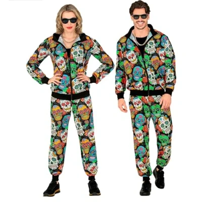 Widmann 07082 Costume Tracksuit, Dia de Los Muertos, Cartoon, Multicoloured, M