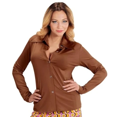 Ladies 70s Style Long Sleeve Blouse 100% Polyester Size: L/XL Can be combined with many different outfits Colour: brown For carnival, theme parties or other fancy dress events, Manufacturer: Widmann