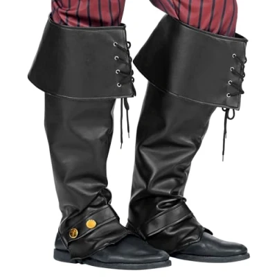 WIDMANN 09815 Pair of Faux Leather Boot Covers, Unisex Adult, Pirate, Musketeer, Knight, Middle Ages, Carnival, Black Color