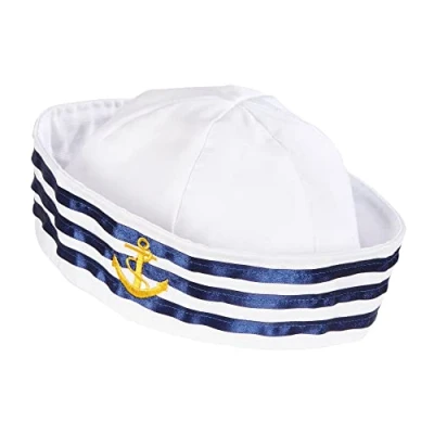 Are you looking for a matching accessory to your navy costume? Then this hat, from Widmann, is just the thing for you The hat is in white and decorated with the three typical blue stripes On the front there is the golden anchor The headpiece is available in one size and suitable for men and women alike More beautiful costumes and accessories can be found in our brand shop. Click on the brand name Widmann below the product title, Manufacturer: Widmann