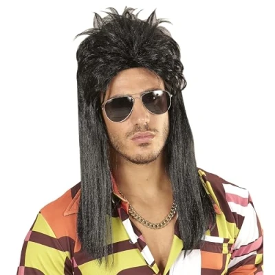 Adult Vokuhila Wig in Polybag Size: One size fits Can be combined with many different outfits and costumes. Colour: black. For carnival, theme parties or other fancy dress events., Manufacturer: Widmann