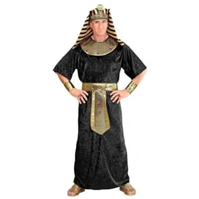 With this costume set, you can transform yourself into Tutankhamun, the ancient Egyptian king The costume for adults is available in size XL Included are the tunic, collar, belt, bracelets and headpiece The tunic is designed in black. The golden collar, belt and headpiece are decorated with gemstones With the matching accessory such as a scepter (not included) you can perfectly complement the costume, Manufacturer: Widmann S.r.l.