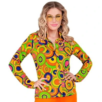 Diese Bluse fr Damen bringt den einzigartigen Stil der 70er Jahre zurck It is available in size XXL for adults The women's blouse is designed with colourful circles Mit einer penden Schlaghose, einer Brille und einem Haarband (nicht enthalten) knnen Sie den Hippie Look ideal ergnzen Whether at a hit move, carnival or a flower power theme party, with this women's shirt you will be the centre of attention at any event, Manufacturer: Widmann