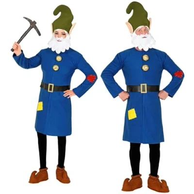 Are you looking for an eye-catching costume for the next carnival or theme party? Then the costume set gnome, by Widmann, is just the thing for you Included are the blue top and the dark green hat with beard in size XL / XXL The top is decorated with a yellow and a red patch. The gold-coloured buttons are a special eye-catcher With this costume, your imagination knows no bounds. Combine it with a pickaxe or other accessories and complete it perfectly More beautiful costumes and accessories can be found in our brand shop. Click on the brand name Widmann below the product title, Manufacturer: Widmann