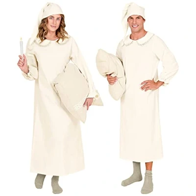 With this costume set, from Widmann, you can transform yourself into a sleepwalker Included are the nightdress and the sleeping cap. Both costume elements are in white The costume set can be perfectly combined with accessories, for example with a pillow or a candle It is suitable for men and women alike. You will receive the set in size M/L Other beautiful costumes and accessories can be found in our brand shop. Click on the brand name Widmann below the product title, Manufacturer: W WIDMANN MILANO Party Fashion