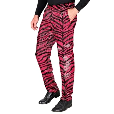 You'll be ready to stand out at your next carnival party in this pink sequin pant from Widman It is available in adult size M It has two pockets in the trousers and also offers the ability to clip a belt The whole pants are designed in a zebra pattern and decorated with shiny sequins The combination possibilities are endless, wear men's trousers with a matching shirt, coat or jacket (without accessories) to complete the look, Manufacturer: Widmann S.r.l.