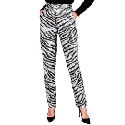 With these trousers you are ready to stand out at the next carnival party! Available in Adult XL It has two pockets and also offers the possibility of adding a belt The whole pant is decorated with sparkling zebra-shaped sequins The combination possibilities are endless, wear the women's pants with a matching blouse or put on some fashion glasses (no accessories included) to complete the look, Manufacturer: Widmann