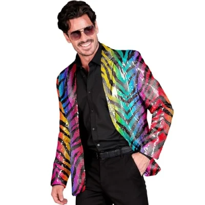 With this jacket from Widmann, you are ready to stand out at the next carnival party The jacket is available in size S for adults The jacket is fully decorated with sparkling rainbow sequins in a tiger pattern Furthermore, it is equipped with two pocket patches and a button on the front Whether at the hit move, carnival or Christopher Street Day, with this blazer you will be the centre of attention at any event, Manufacturer: Widmann
