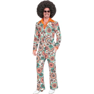 With this colourful suit from Widmann you can bring back the unique style of the 60s Im Lieferumfang enthalten sind sowohl das Jackett als auch die Hose in der Gre L The beige suit is designed with colourful mandala motifs in vintage style Die Anzugjacke ist mit zwei Knpfen auf der Vorderseite ausgestattet, wodurch die Option besteht, diese entweder offen oder geschlossen zu tragen Awaken your inner gentleman and be ready to be in the spotlight, be it at the hit move, a carnival party or a New Year's Eve themed party, Manufacturer: Widmann