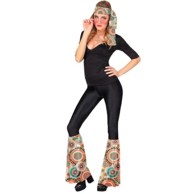 The cuffs are equipped with an elastic waistband, which allows them to be easily pulled over the trousers They are designed in beige and with colourful mandala motifs in vintage style Included are the headband and leg warmers, Manufacturer: Widmann S.r.l.