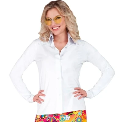 Do you love the 70s and are looking for the ideal costume? Then this shirt from Widmann is just the thing for you This shirt is perfect for a 70s themed party, for a Carnival costume or for a theater performance Plain white long-sleeved shirt with wide pointed collar, slightly tailored cut and transparent buttons Composition: 95% polyester, 5% elastane. Hand wash, do not bleach, do not tumble dry, do not iron, do not dry clean Size XXL. Item code: 21003, Manufacturer: Widmann