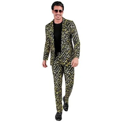 Amazon MarketplaceMit diesem Set der Firma Widmann erhalten Sie das ideale Outfit fr Ihre Silvesterparty The costume for adults is available in size S The box contents include both the jacket and the trousers in black Both clothing parts are printed with golden Happy New Year lettering, champagne gles and stars Start the new year in style and confidently with this elegant suit, Manufacturer: Widmann