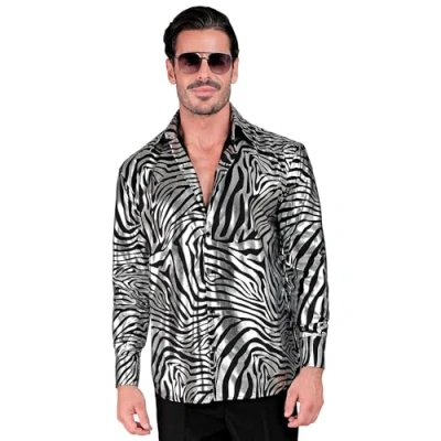 Widmann 33905 party fashion shirt, Zebra Print, Silver, S M