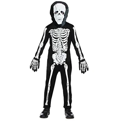 With this costume from Widmann, your child will transform into a fearsome skeleton This costume is available in the size 116 cm. This size is suitable for children between 4 and 5 years Included are the black jumpsuit and mask. The entire costume is printed with a white skeleton With the matching accessories such as gloves or a scythe (not included), you can round off the costume visually ideally More beautiful costumes and accessories can be found in our brand shop. Click on the brand name Widmann below the product title, Manufacturer: Widmann