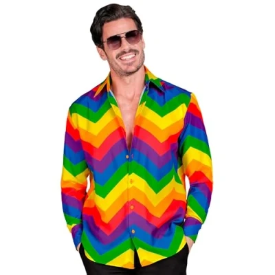 With this eye-catching fashion shirt from Widmann, you are ideally prepared for Christopher Street Day It is available in size XXL The men's shirt is striped in rainbow colours It is equipped with long sleeves and a stand-up collar Be ready to be in the spotlight, be it at CSD, a carnival party, festivals or other events, Manufacturer: Widmann S.r.l.