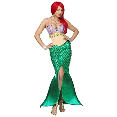 Would you like to swim through the room as a shimmering mythical creature at the next fancy dress or theme party? Then you are just right with the mermaid costume from Widmann With the delivery of the costume in size L, you will receive a long, shimmering mermaid dress in lilac, gold and teal. (Necklace, earrings, bracelet and wig are not included) The costume has a 2 in 1 look, as the top and skirt are connected with inconspicuous, skin-coloured fabric at belly height. Make an unforgettable appearance as a sea goddess in this stunning costume With the seductive costume "mermaid", from Widmann, you will be an eye-catcher at the next fancy dress, costume or theme party Other beautiful costumes and accessories can be found in our brand shop. Click on the brand name Widmann below the product title, Manufacturer: Widmann