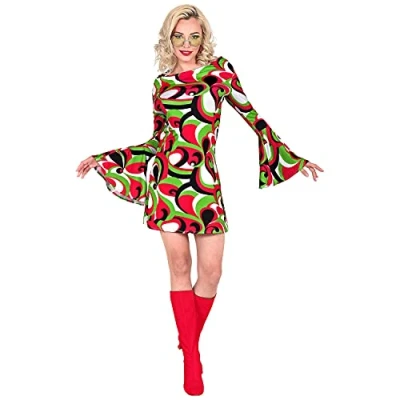 Transform yourself into a 70s Dancing Queen with this fancy dress costume The costume for adults is available in size S Included is the short colourful dress with trumpet sleeves With matching accessories such as a wig, a flower wreath or glasses (not included), you can perfectly complement the costume Excellent for carnival, theme parties or the hit move, Manufacturer: Widmann S.r.l.