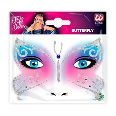 Do you want a shiny appearance at the carnival or theme party? Then the self-adhesive face stickers from Widmann are just the right addition to your outfit The glitter butterfly stickers are great for making your carnival make-up something very special These are beautiful stickers and gemstones for the face and body, which you can apply to the skin according to your wishes Combined with a costume or matching accessories, from Widmann (not included), you will make a statement at carnival or at the theme party More beautiful costumes and accessories can be found in our brand shop. Click on the brand name Widmann below the product title, Manufacturer: Widmann