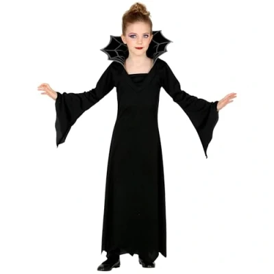 Widmann 52389, Vampirin Children's Long Collar Silver Black for Girls Vampire Bat Costume Fancy Dress Theme Party Carnival Halloween, multicoloured, 164 (EU)