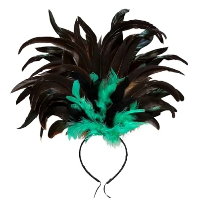 WIDMANN 66013 Copacabana Feather Headband, Adult Woman, 1910s, 1920s, Burlesque, Can Can, Brazilian Carnival, Show, Color Black Green