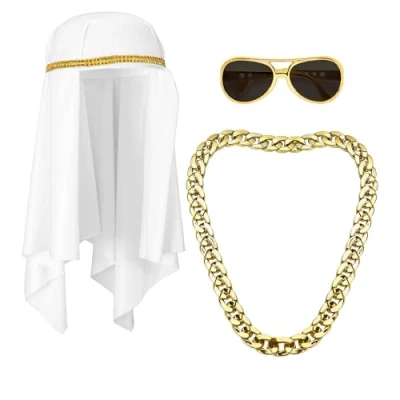 Widmann 68545 Arabic Sheikh Costume Set, Headscarf, Chain, Glasses, Arabian, Sultan, Theme Party, Carnival