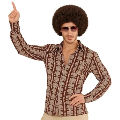 Men's 70s Style Long Sleeve Shirt 100% Polyester Size: S/M Can be combined with many different outfits Colour: brown / beige For carnival, theme parties or other costume events, Manufacturer: Widmann