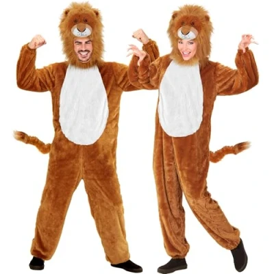 Peluches costume, with hood Adult Unisex Onesie Costume travestiri Animal Costume Costume Plush lion () ideal for Carnival, all masquerade costume with hood and mask and forest animal, Manufacturer: Widmann