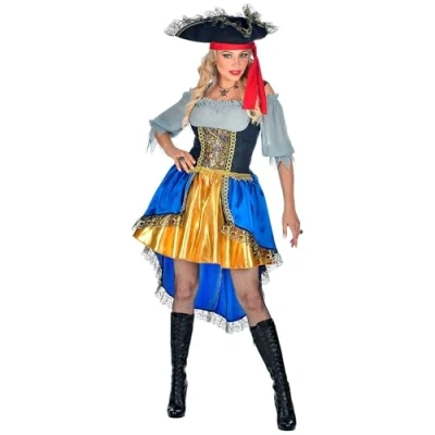 With this costume from Widmann, you can transform yourself into a chic pirate captain. The set consists of a dress with an asymmetrically cut skirt, a grey off-shoulder blouse with serrated sleeves and a trident hat with tulle Thanks to its beautiful accents, the costume is ideally set in the scene. The trim is available in size S. Simply a great pirate costume, with which you can attract attention. Care instructions: hand wash, do not bleach, do not tumble dry, do not iron, do not dry clean More beautiful costumes and accessories can be found in our brand shop. Click on the brand name Widmann below the product title, Manufacturer: Widmann