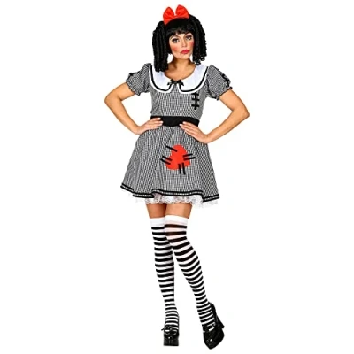 With this costume from Widmann, you can turn into a creepy doll as you know from many horror films. The set consists of a black and white checked dress with a mature underskirt and a red hair bow Thanks to its striking accents, such as a red heart and a black stitching, the outfit is particularly attractive. Around the centre of the body is a black wide band, which emphasizes the waist of the wearer. The costume is available in size L More beautiful costumes and accessories can be found in our brand shop. Click on the brand name Widmann below the product title, Manufacturer: Widmann