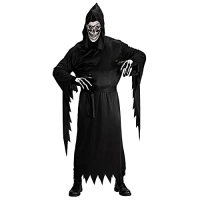 With this costume you can transform yourself into a fearsome Grim Reaper The unisex costume for adults is available in size XL Included is the black tunic, belt and mask with hood With the matching accessories such as a scythe (not included), you can visually complete the costume So equipped, you will be chasing in some party guests as a gloomy, creepy figure, Manufacturer: Widmann
