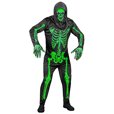 Widmann Neon skeleton costume, jumpsuit, gloves, mask, Halloween, carnival, theme party