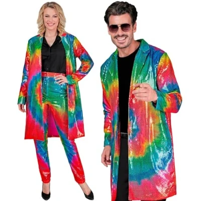 This sequin coat in rainbow colours is a real eye-catcher that attracts attention Erhltlich ist er in der Gre S/M fr Erwachsene Er ist mit einem Tie-Dye Muster gestaltet und fr Damen sowie Herren gleichermaßen maen geeignet Wenn das Licht auf der Tanzflche auf Sie fllt, werden die Pailletten das Licht reflektieren und fr ein atemberaubende Funkeln sorgen Dieser Mantel ist ideal fr Clubabende, Partys, Festivals, Karneval und andere Veranstaltungen, bei denen Sie sich von der Me abheben mchten mchten, Manufacturer: Widmann