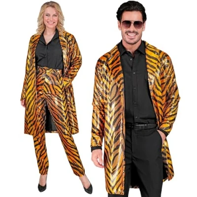 This sequin coat in gold orange is a real eye-catcher that attracts attention Erhltlich ist er in der Gre S/M fr Erwachsene Er ist mit einem Tiger Muster gestaltet und fr Damen sowie Herren gleichermaßen maen geeignet Wenn das Licht auf der Tanzflche auf Sie fllt, werden die Pailletten das Licht reflektieren und fr ein atemberaubende Funkeln sorgen Dieser Mantel ist ideal fr Clubabende, Partys, Festivals, Karneval und andere Veranstaltungen, bei denen Sie sich von der Me abheben mchten mchten, Manufacturer: Widmann