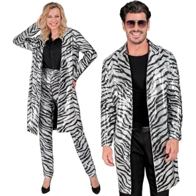 This sequin coat in silver is a real eye-catcher that attracts attention Erhltlich ist er in der Gre L/XL fr Erwachsene Er ist mit einem Zebra Muster gestaltet und fr Damen sowie Herren gleichermaßen maen geeignet Wenn das Licht auf der Tanzflche auf Sie fllt, werden die Pailletten das Licht reflektieren und fr ein atemberaubende Funkeln sorgen Dieser Mantel ist ideal fr Clubabende, Partys, Festivals, Karneval und andere Veranstaltungen, bei denen Sie sich von der Me abheben mchten mchten, Manufacturer: Widmann