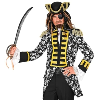 This high-quality parade dress from Widmann is the right choice for your carnival outfit The long blazer is elaborately decorated and decorated with many skulls. It can be combined with a wide range of costumes You will receive the jacket in men's size S Transform yourself into a glamorous showstar, a death groom or a bold pirate on the high seas with this parade tail Complete the Widmann Guard Uniform with eye-catching accessories (not included) to complete your party outfit perfectly, Manufacturer: Widmann